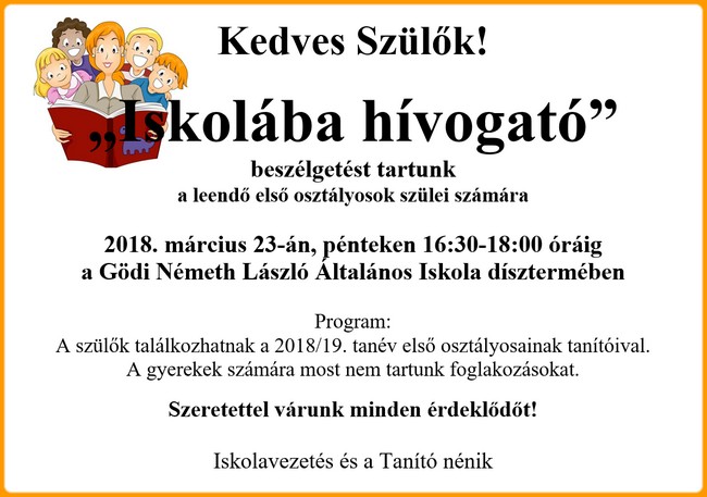 - 2017. május 15-én, hétfőn 17 órára az első szülői értekezletre.