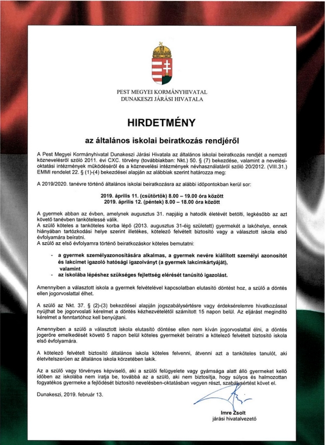 Pest Megyei Kormányhivatal Érdi Járási Hivatala a nemzeti köznevelésről szóló