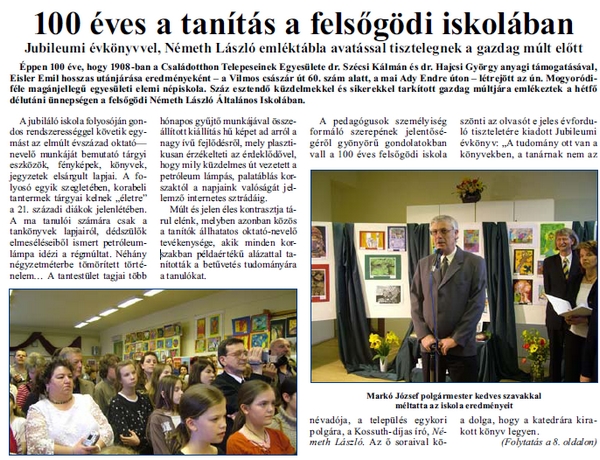 (Forrás: Dunakanyar Régió XII. évfolyam 21.szám 2010. október 27.
